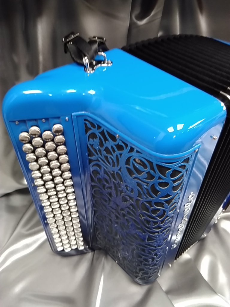 Main droite :3 voix musette, 4 rangs, 3 registres double