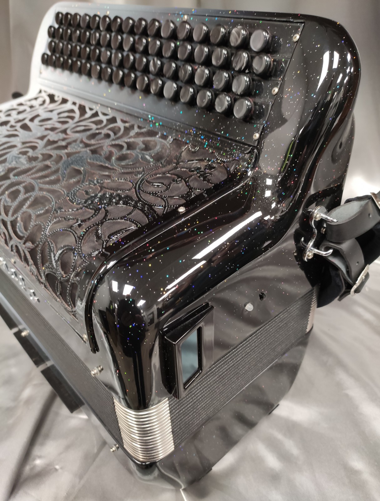 Coloris :Dégradé noir/ blanc pailleté pailleté, Boutons noirs