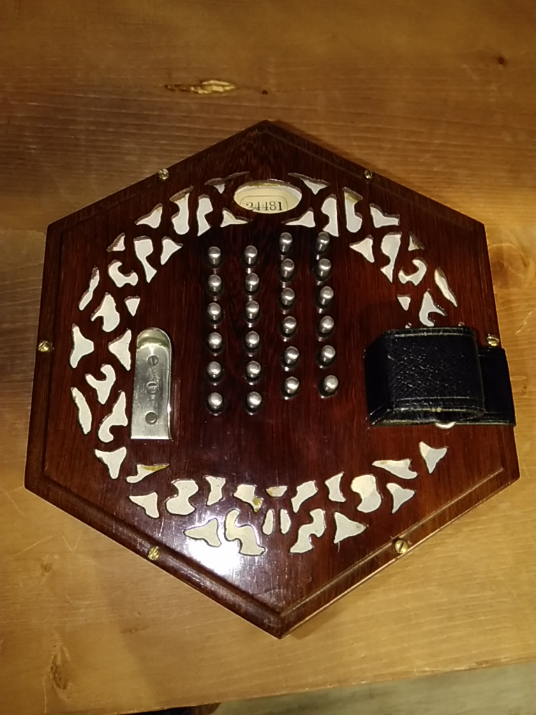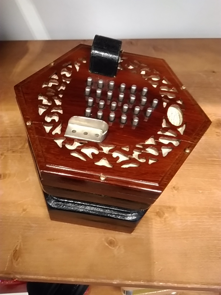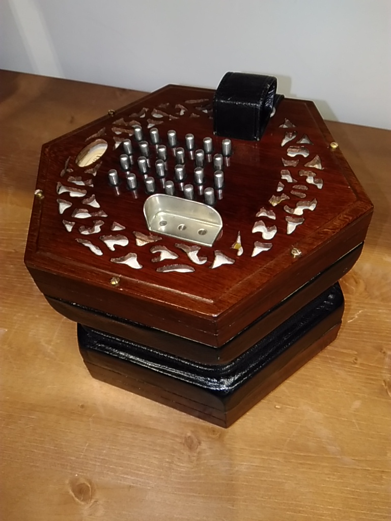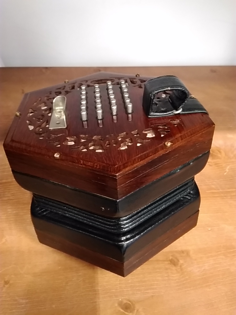 Très beau modèle de concertina fidéle à sa réputation. Le diapason d'origine est à 435 Hz.