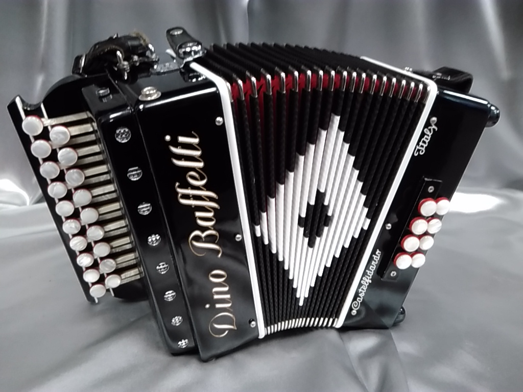 Main droite : Tonalité D/G, 2 Voix, 2 rangs 1/2 pour 19 touches.
