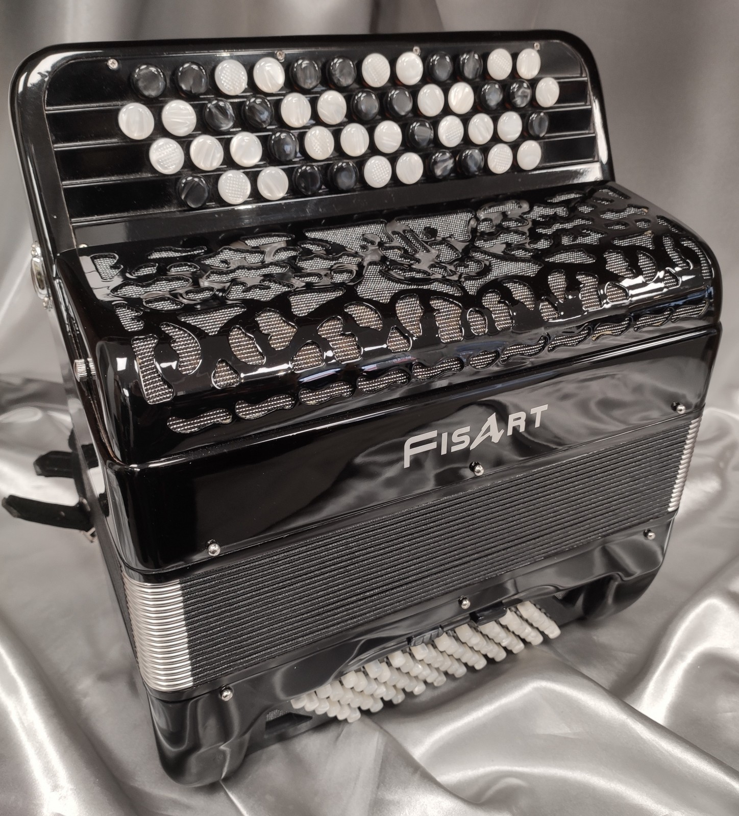 Modèle Fisart Découverte 1 voix au chant avec 66 basses standard/basses chromatique. Idéal pour l'étude des basses chromatiques avec une étandue et un format idéal à l'étude. Disponible à la vente ou la location.