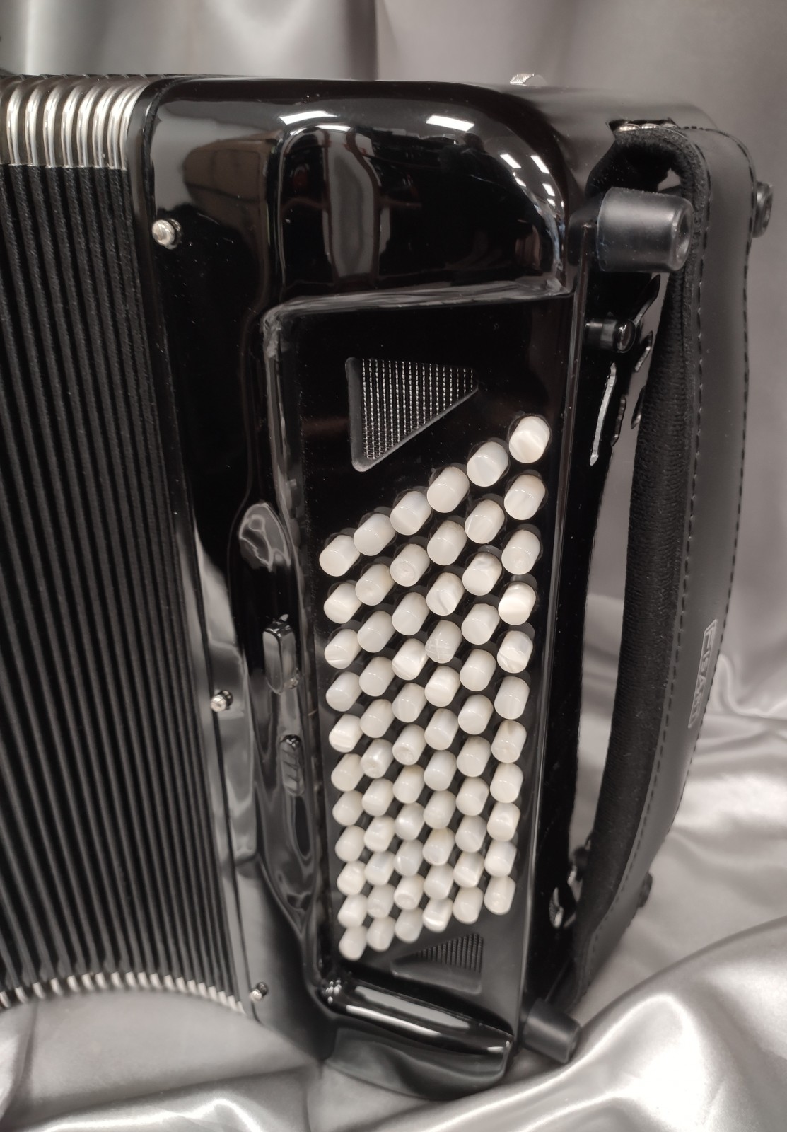 Main gauche : 66 basses standard avec 2 registres (standards et 30 notes en basses chromatiques).