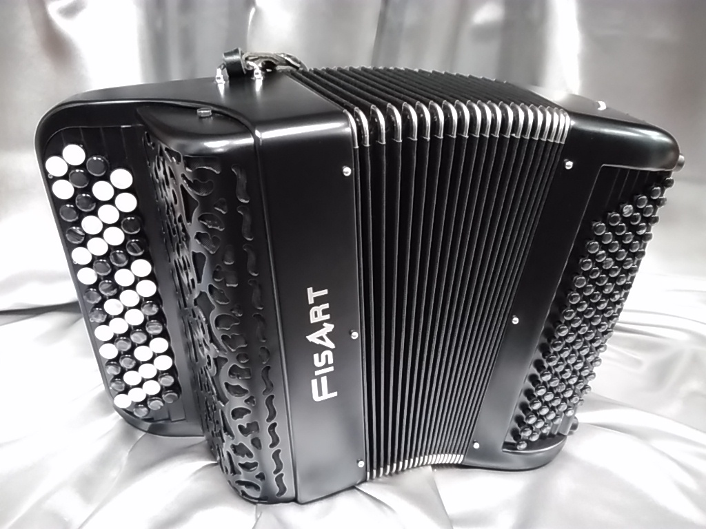 Main droite : 3 voix avec basson, 4 rangs, 40 notes, 92 boutons, 5 registres
