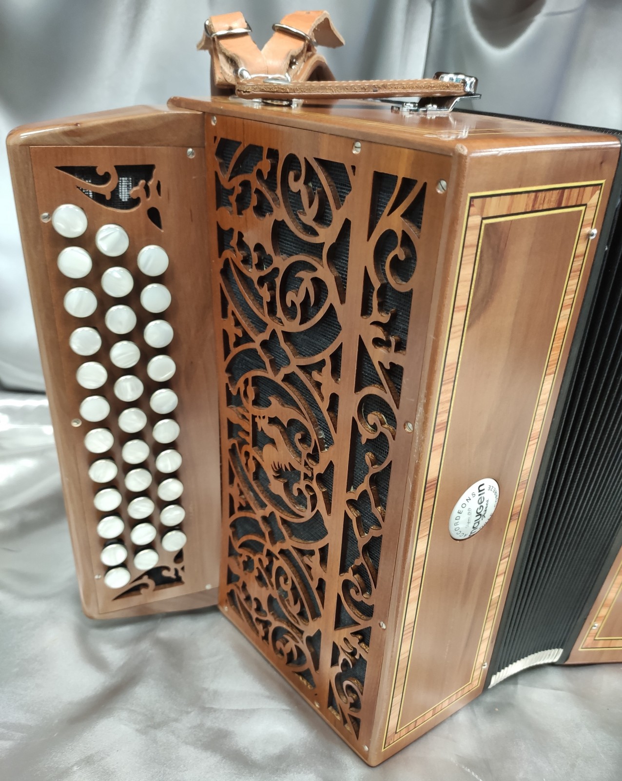 Modèle Maugein Luthinier 3/18, 2 voix bandonéon en G/C et 18 basses pour ce modèle. A saisir !