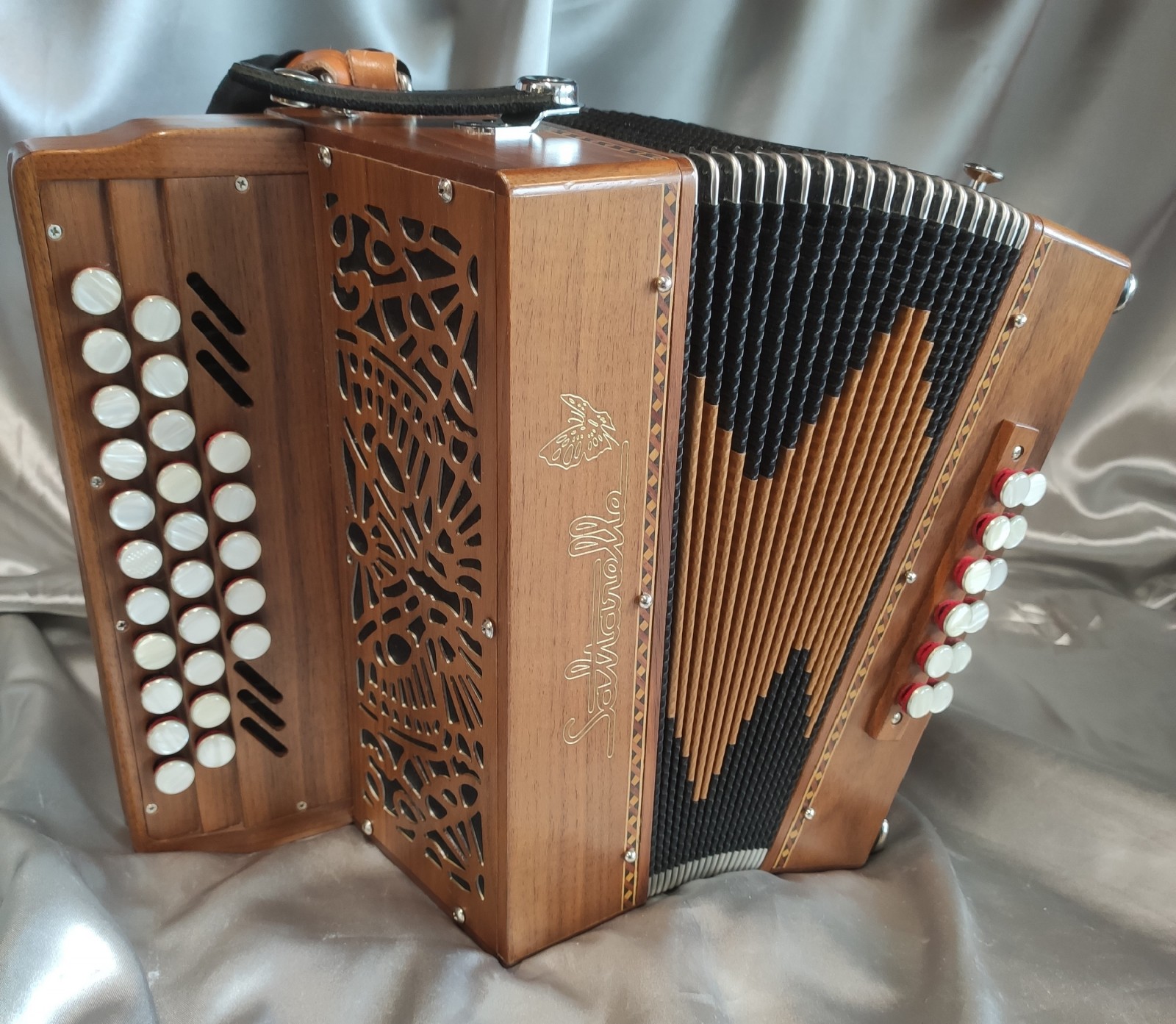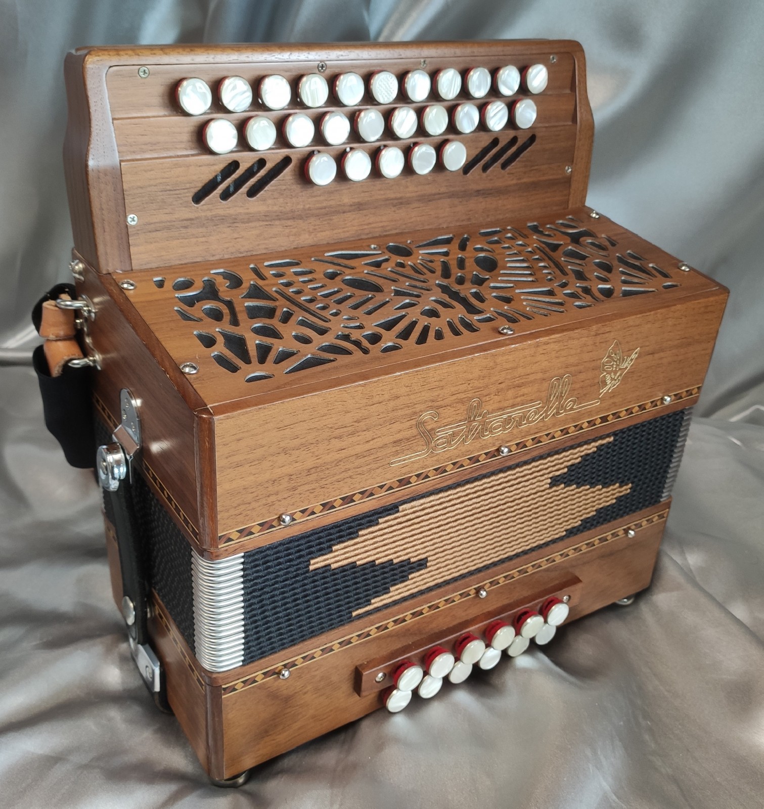 Main droite : Tonalité G/C, 2 Voix (8'-8'), 2 rangs 1/2 pour 24 touches.