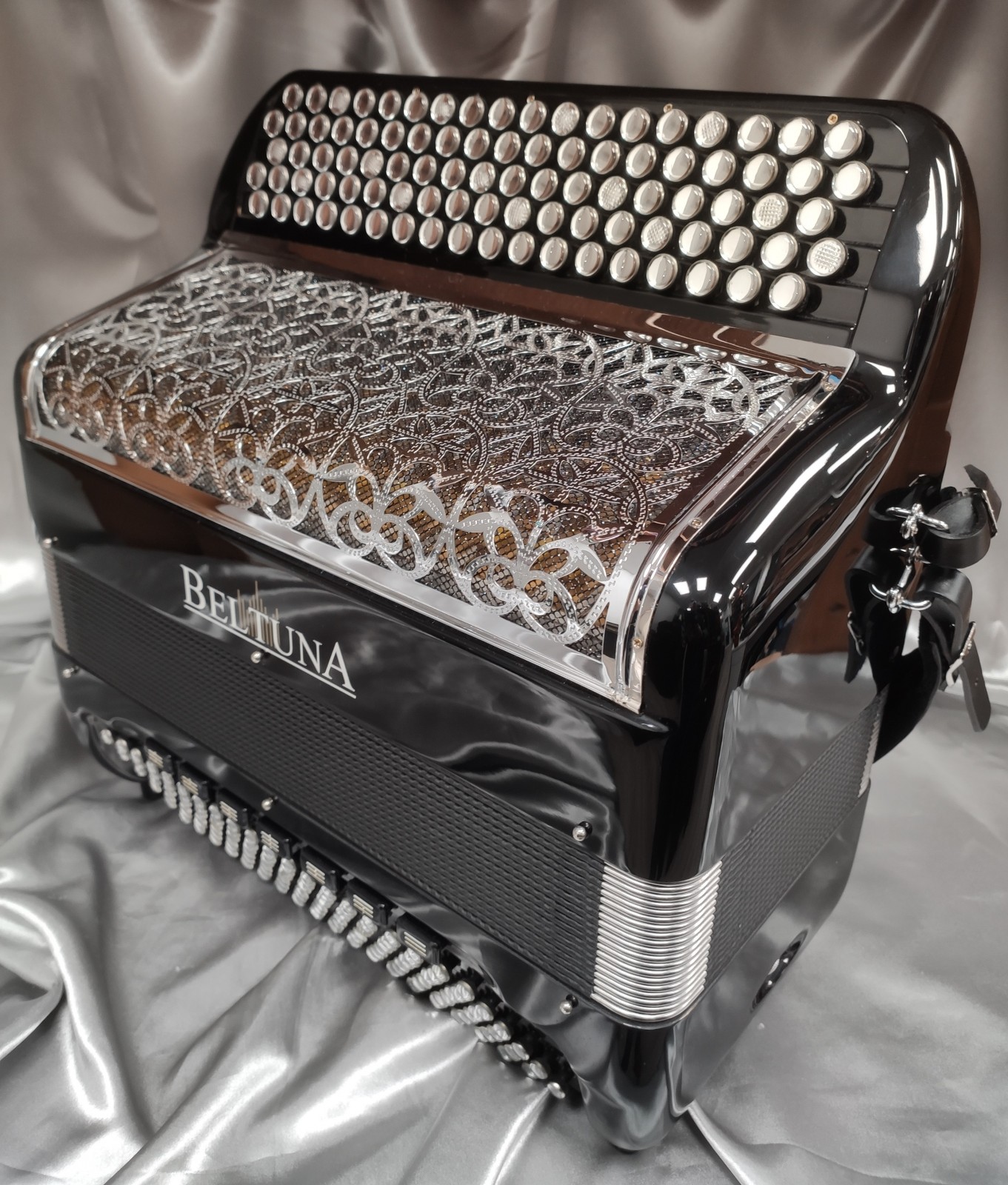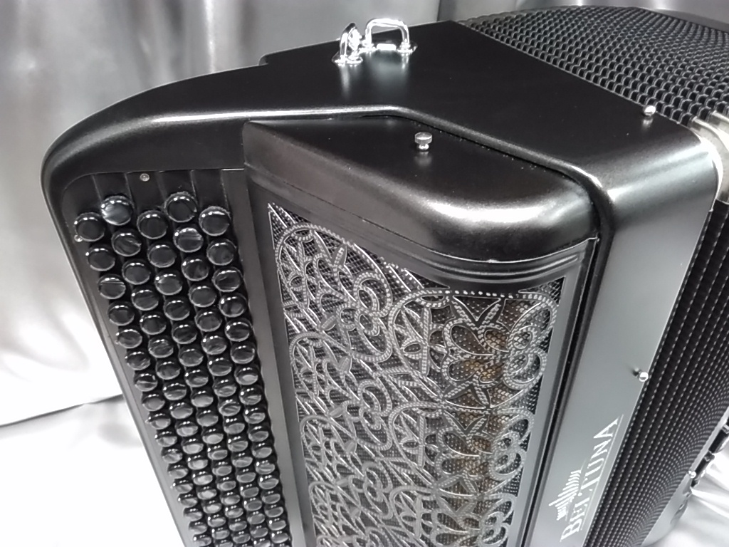 Main droite : 4 voix double boite de résonance, double basson en boite, Amplisound, 5 rangs, 56 notes, 92 boutons, 5 registres doubles