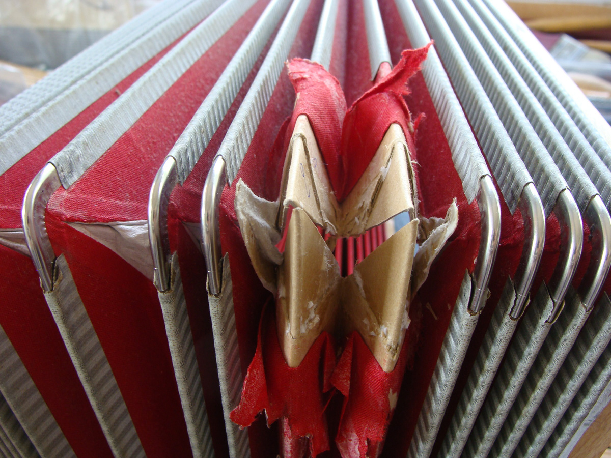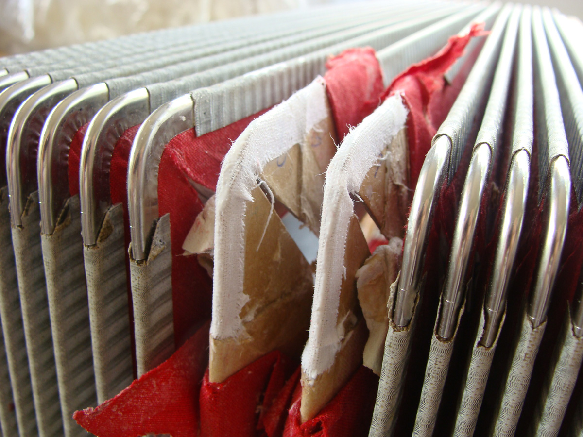 Les bandes de soufflet neuves préparées sont ensuite collées.